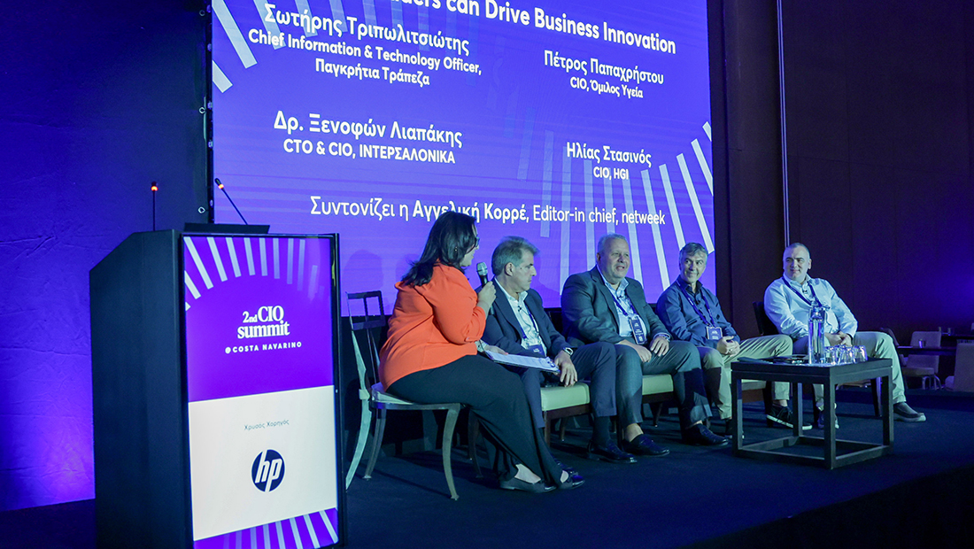 Ο κ. Αναγνωστόπουλος αφού μίλησε για μερικά από τα κομβικά έργα του υπ. Ψηφιακής Διακυβέρνησης (gov.gr, Κέντρο Διαλειτουργικότητας, GovAI) αναφέρθηκε στην αλλαγή που έχει επέλθει τα τελευταία χρόνια στο ρόλο του CIO, ο οποίος όπως είπε χαρακτηριστικά «δεν είναι πλέον ο παραδοσιακός διευθυντής μηχανοργάνωσης, αλλά ένας business solutions architect που συν-διαμορφώνει την επιχειρησιακή στρατηγική μιας εταιρείας ή ενός οργανισμού». Το πάνελ συζήτησης της δεύτερης ημέρας είχε τίτλο «How IT Leaders can Drive Business Innovation και συμμετέχοντες τους Σωτήρης Τριπολιτσιώτη, Chief Information & Technology Officer, Παγκρήτια Τράπεζα, Πέτρος Παπαχρήστου, CIO, όμιλος Υγεία, Δρ Ξενοφών Λιαπάκη, CTO & CIO, Intersaonica και Ηλία Στασινό, CIO, ΗGI. Οι ομιλητές, μεταξύ άλλων αναφέρθηκαν, στη συμβολή των τεχνολογικών πρωτοβουλιών στην προώθηση της καινοτομίας στις επιχειρήσεις και τους παράγοντες οι οποίοι οδήγησαν σε αυτό το αποτέλεσμα.
